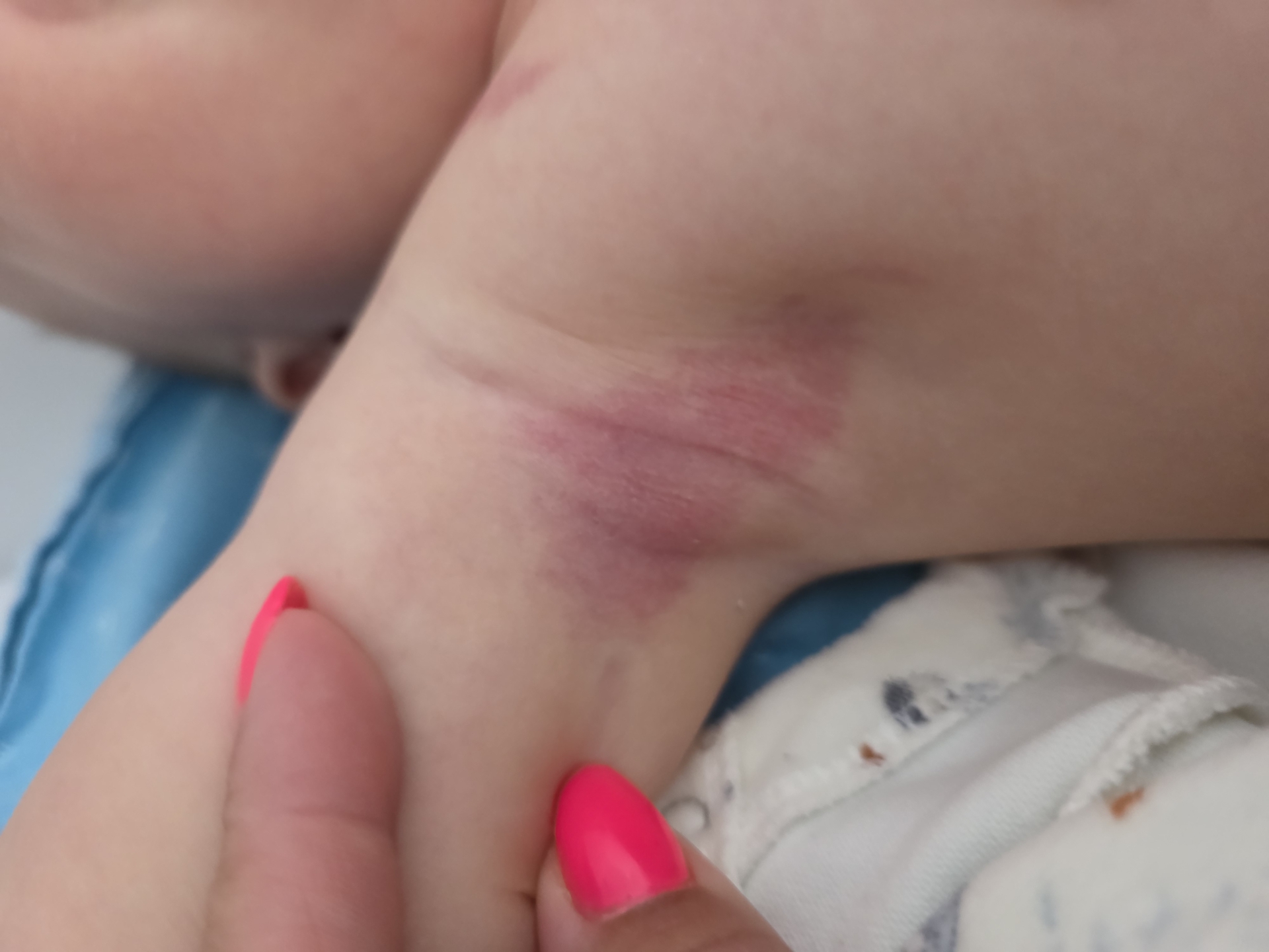 Sz. Państwo; Postawienie rozpoznania w takim przypadku wymaga znacznie więcej niż ocena zdjęć - wygląd kończyny, badanie dotykiem, badania obrazowe, badania krwi, genetyka - wszystko ma znaczenie. a czy te plamy sa cieplejsze? Czy mają szybszy powrót kapilarny? Dół pachowy to nietypowa lokalizacja dla malformacji kapilarnych. Grubsza rączka wygląda jak w przypadku malformacji limfatycznej? obrzęku limfatycznego. Trzeba cierpliwie wykonać wszystkie badania. Pozdrawiam DW